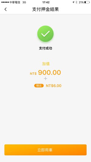 停放後在後車輪上的鎖頭往下關上,手機跳出此次的騎乘紀錄後便完成還車囉!